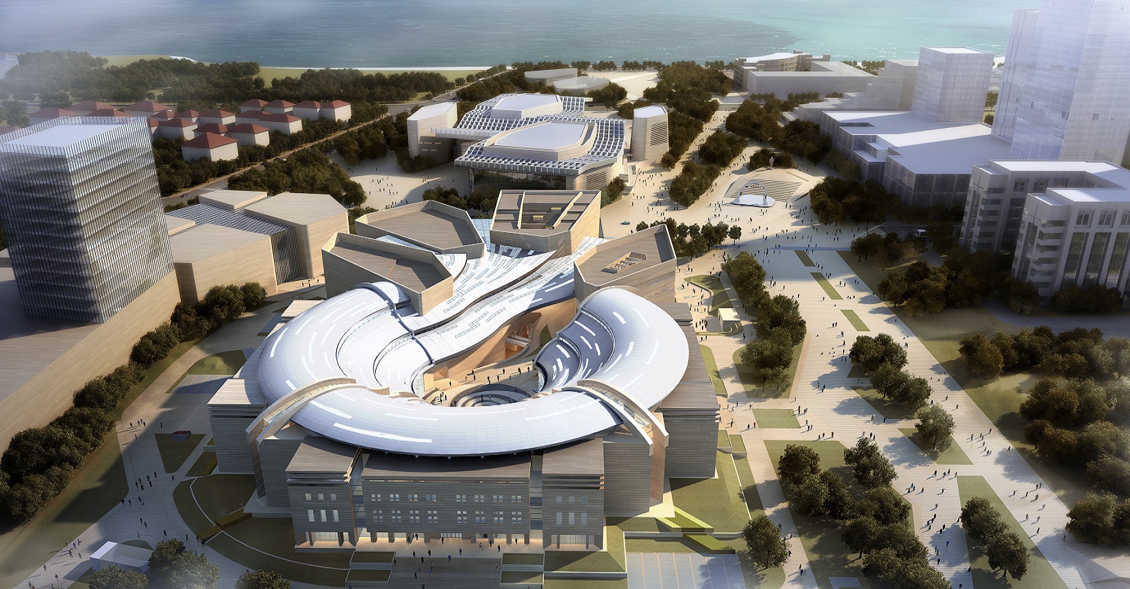 該項目由我院聯(lián)合中國建筑設(shè)計研究院崔愷院士團(tuán)隊共同打造。設(shè)計方案以“嶗山石花、海涌浪激”的意向為基調(diào),形成“浪涌石開、時空留痕”的文化景象。
