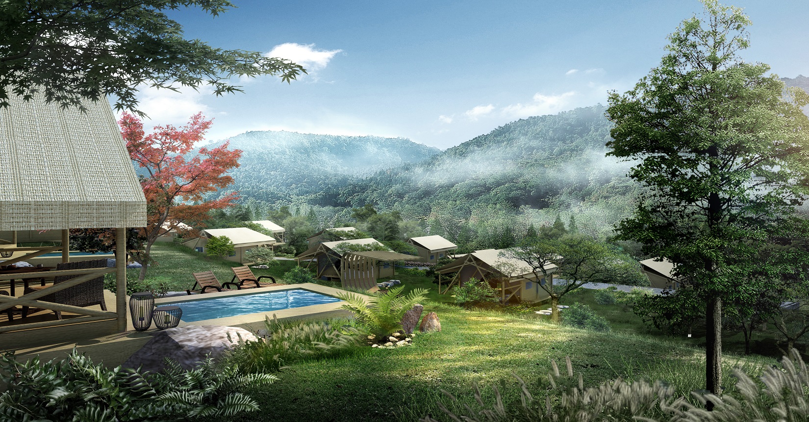本項(xiàng)目的定位為自然、野奢的景觀風(fēng)格。對于野奢度假酒店景觀環(huán)境設(shè)計遵從“野”“奢”兩點(diǎn),融入荒野生態(tài)的設(shè)計理念,又要與場地相融合、與原生態(tài)相映、與當(dāng)?shù)氐拿袼罪L(fēng)情相交匯,突出當(dāng)?shù)氐奈幕黝},強(qiáng)調(diào)高品質(zhì)的自然、野奢度假,從而打造出一個具備個性與特色,使游客能夠享受到自然野趣體驗(yàn)的景觀環(huán)境。